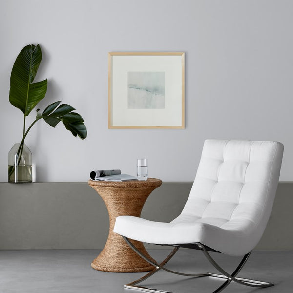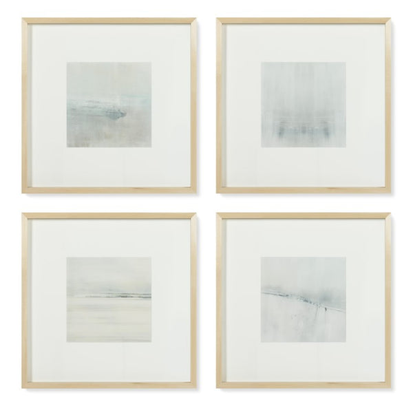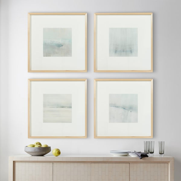 The natural world is the central theme in Carol Benson-Cobb's abstract paintings. Incorporated into her work is a fluid gesture and nuanced color that references land and sea, and encourages the viewer to use their imagination to fill in the details. Abstract landscapes present an idea of opacity - a sense of haze as if a view was obscured by fog or a memory muddled by time. With the use of ultra-light colors of cream, tan, and blue, as well as natural wood frames, each painting seamlessly integrates into any interior.